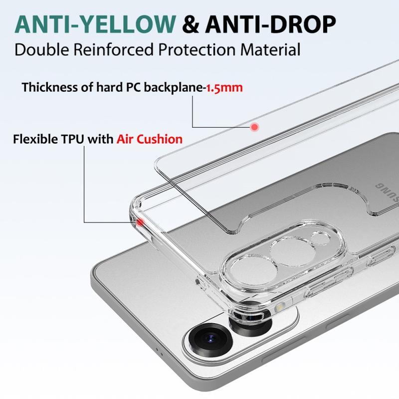 Detta tillbehör använder en kombination av akryl och TPU för att hålla din smartphone i bästa skick. Samtidigt ser förstärkta, stötabsorberande hörn till att förhindra skador från fall, medan den genomskinliga designen visar upp den vackra designen av din Samsung Galaxy S25 Edge.