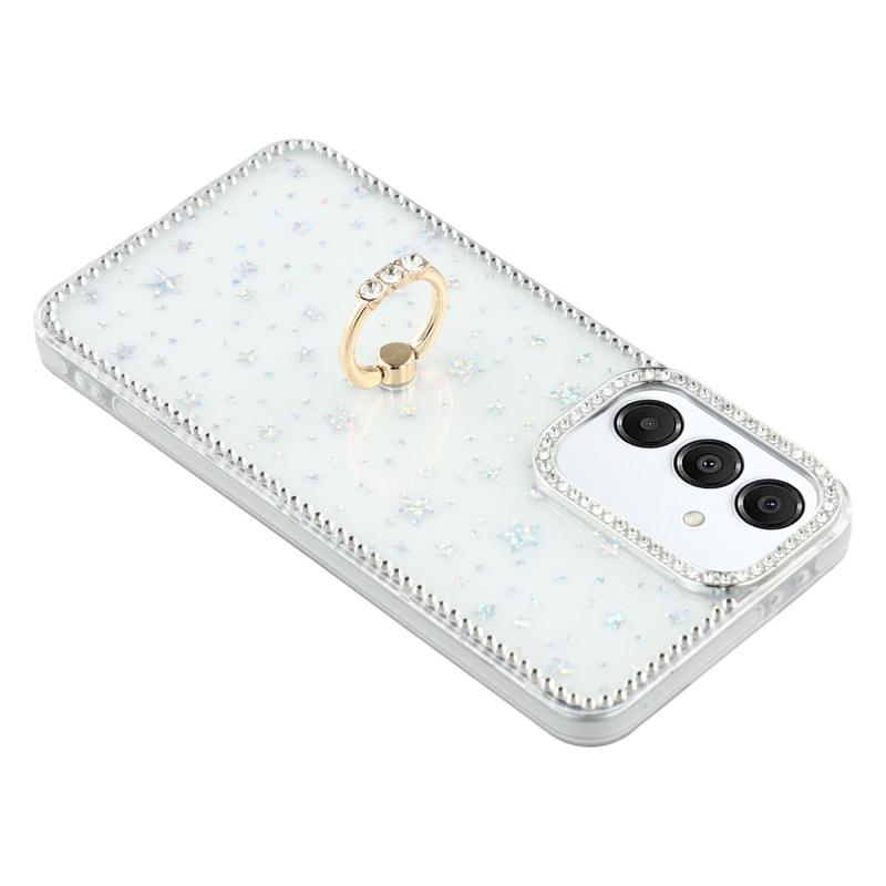 Ge din Samsung Galaxy S25, Galaxy S24 omedelbar stjärnkvalitet och pålitligt vardagsskydd. Detta slimmade hybridskal sveper in din Samsung Galaxy S25, Galaxy S24 i glänsande strass, en slät glitterbaksida och en metallring med full rotation som fungerar som ett säkert grepp eller skrivbordsstativ.