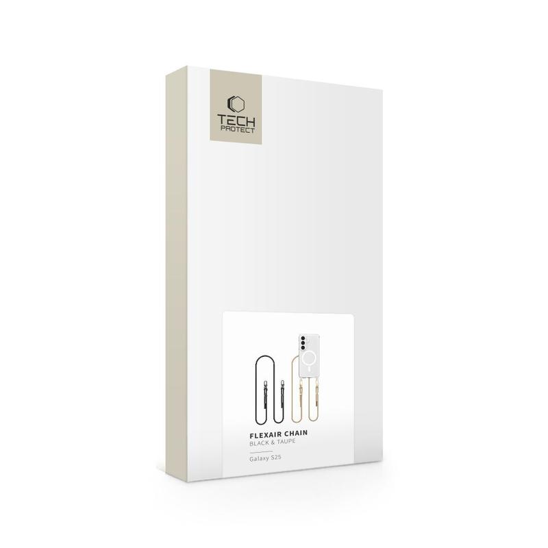 Tech-Protect FlexAir Chain MagSafe Case ger stil och funktion till din Samsung Galaxy S25 med sin MagSafe-kompatibilitet och eleganta design i svart och taupe. Detta lätta fodral ger ett starkt skydd samtidigt som det erbjuder ett modernt kedjetillbehör för extra bekvämlighet.