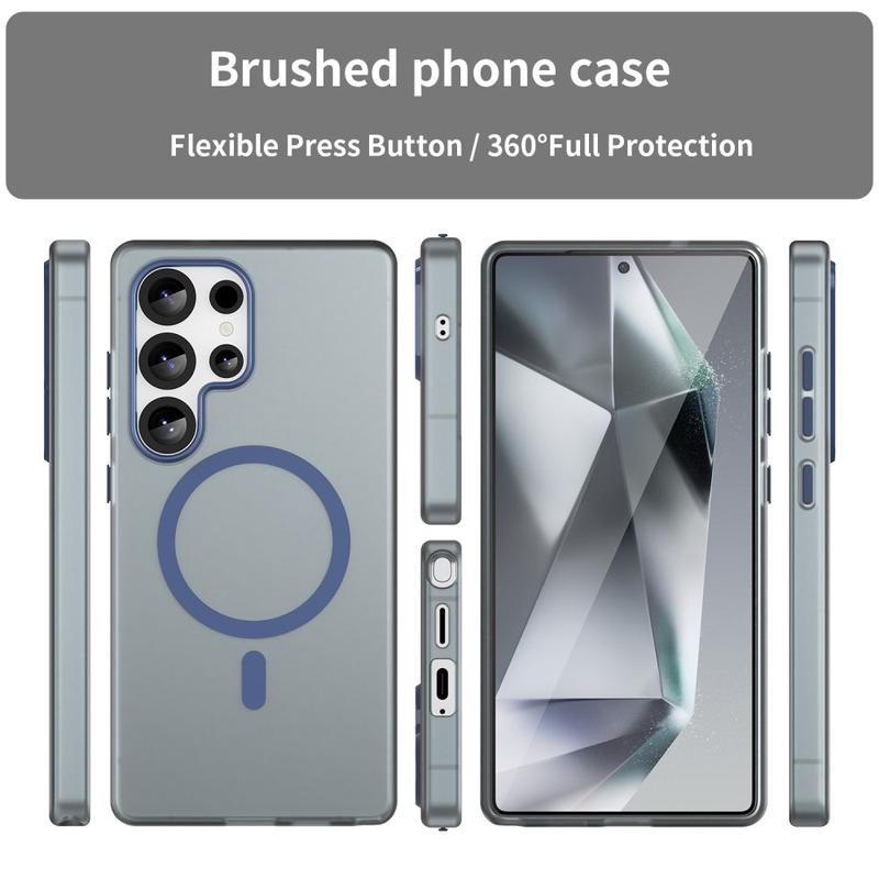 UltraGuard Matte MagSafe Case erbjuder en perfekt balans mellan skydd och elegant design för din Samsung Galaxy S25 Ultra. Det här tunna, lätta fodralet är tillverkat av en hållbar blandning av TPU- och PC-material. Dess matta genomskinliga finish ger din Samsung Galaxy S25 Ultra ett elegant utseende samtidigt som den ger enkel åtkomst till MagSafe-laddning. Med överlägset fall- och repskydd är det ett utmärkt val för daglig användning.