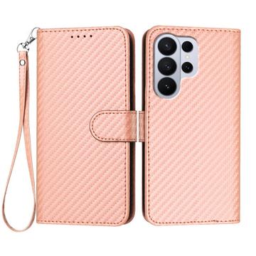 Premium plånboksfodral med rem för Samsung Galaxy S26 Ultra - kolfiberstruktur