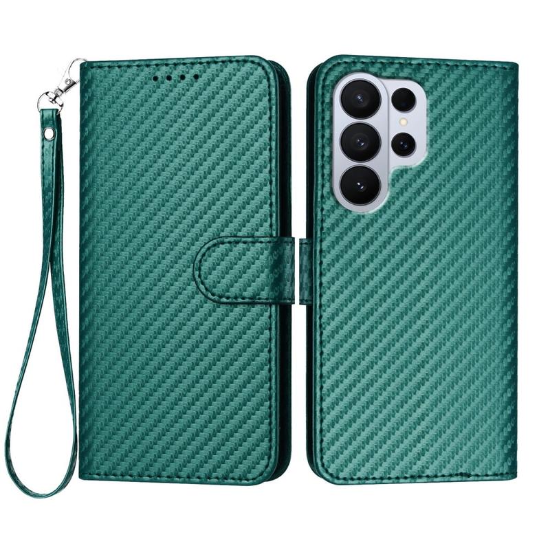 Premium plånboksfodral med rem för Samsung Galaxy S26 Ultra - kolfiberstruktur