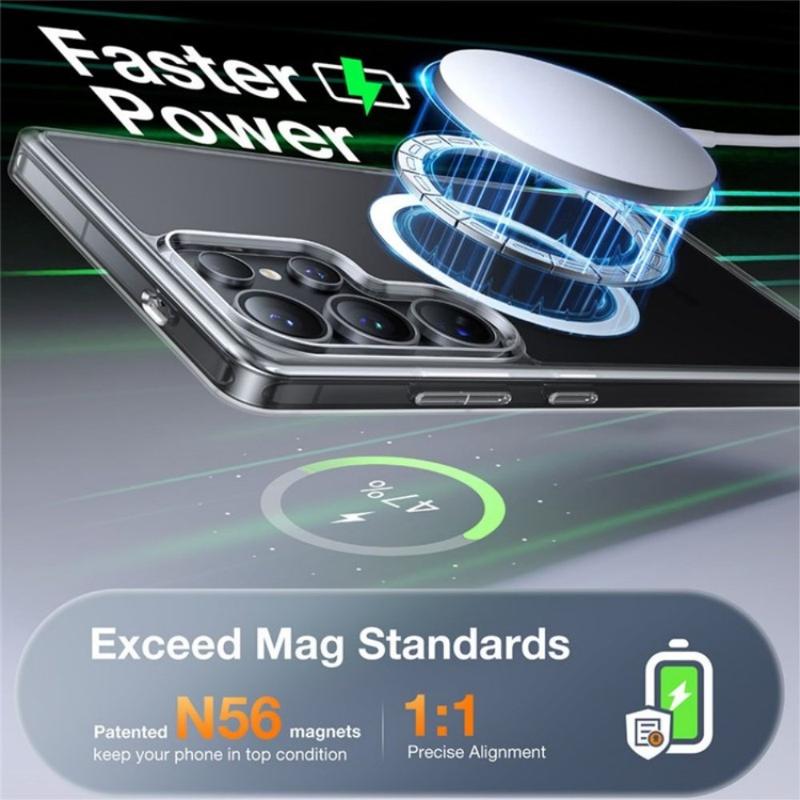 Integrerade höghållfasta magneter ger en säker och stabil anslutning till magnetiska laddare, bilfästen och andra kompatibla tillbehör. Den magnetiska inriktningen möjliggör sömlös trådlös laddning och tillförlitlig fastsättning utan att ta bort fodralet.