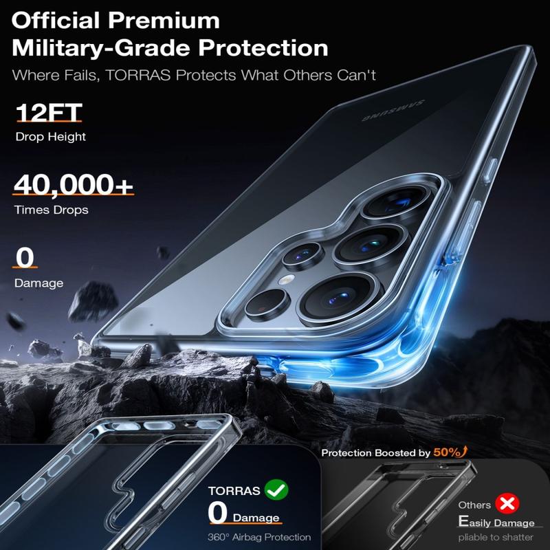 Designad med 1,5 mm upphöjda kanter runt skärmen och 2,5 mm upphöjt skydd runt kameramodulen, hjälper fodralet till att förhindra repor från direktkontakt med plana ytor och skyddar de mest känsliga områdena på din Samsung Galaxy S26 Ultra.