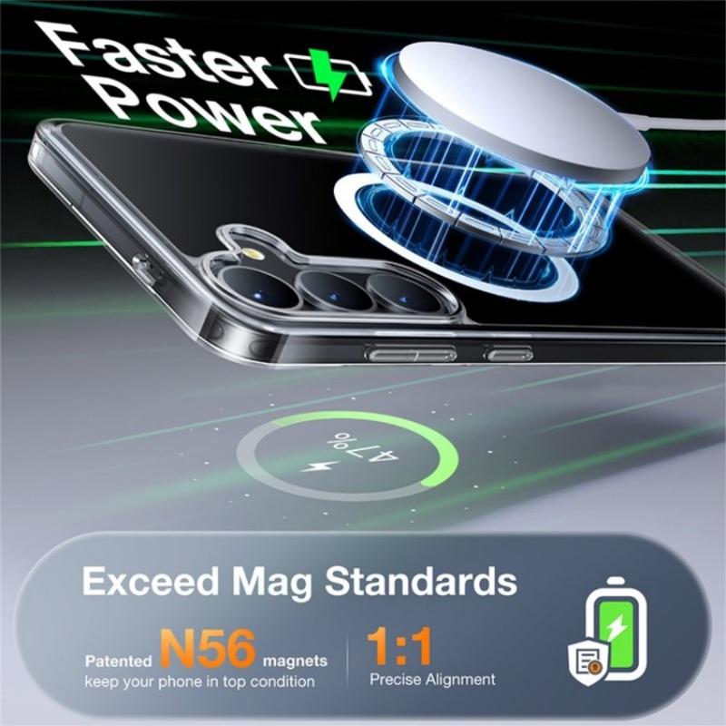 Integrerade höghållfasta magneter ger en säker och stabil anslutning till magnetiska laddare, bilfästen och andra kompatibla tillbehör. Den magnetiska inriktningen möjliggör sömlös trådlös laddning och tillförlitlig fastsättning utan att ta bort fodralet.