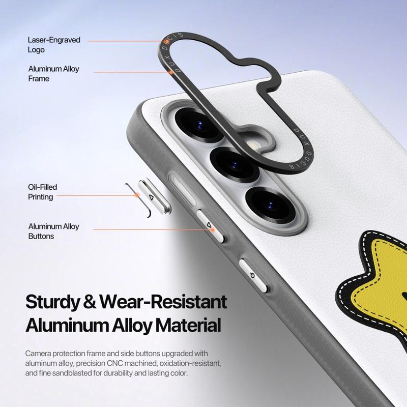 Kameraskyddsramen och sidoknapparna är tillverkade av aluminiumlegering, exakt CNC-maskinbearbetade och avslutade med fin sandblästring. Detta garanterar en långvarig färg, hållbarhet och en premiumkänsla, förstärkt med subtila lasergraverade detaljer.