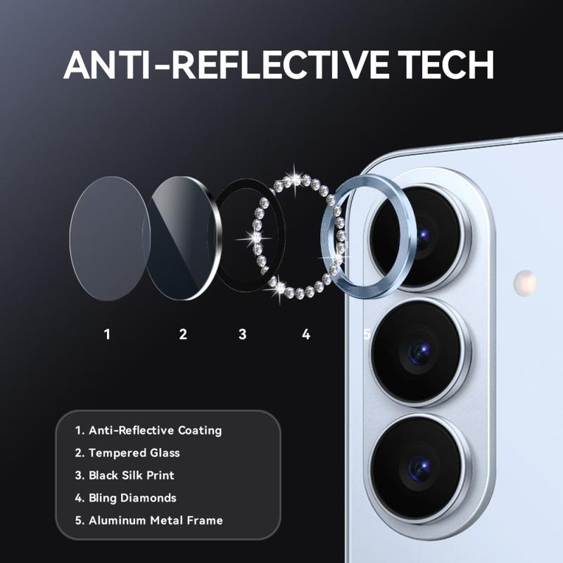 Lägg till glitter och skydd till din Samsung Galaxy S26 med NORTHJO Camera Lens Protector. Designad med skimrande strass och precisionsskuret härdat glas, håller den din kameralins säker från repor, damm och stötar samtidigt som den ger en touch av elegans och lyx.