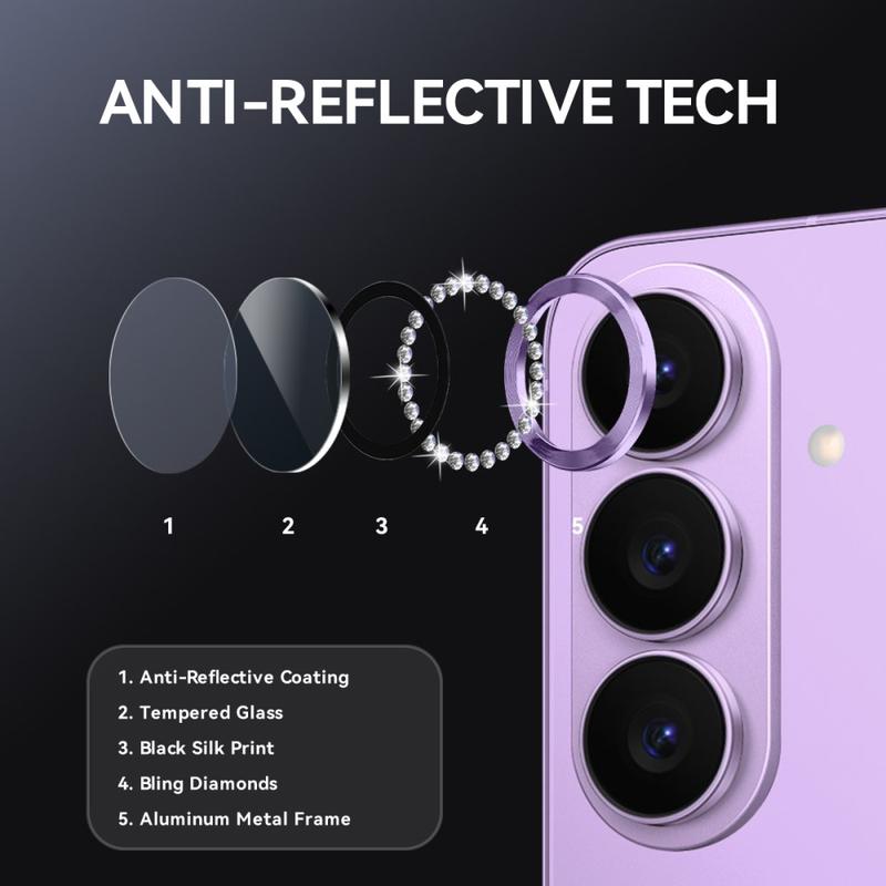 Lägg till glitter och skydd till din Samsung Galaxy S26+ med NORTHJO Camera Lens Protector. Designad med skimrande strass och precisionsskuret härdat glas, håller den din kameralins säker från repor, damm och stötar samtidigt som den ger en touch av elegans och lyx.