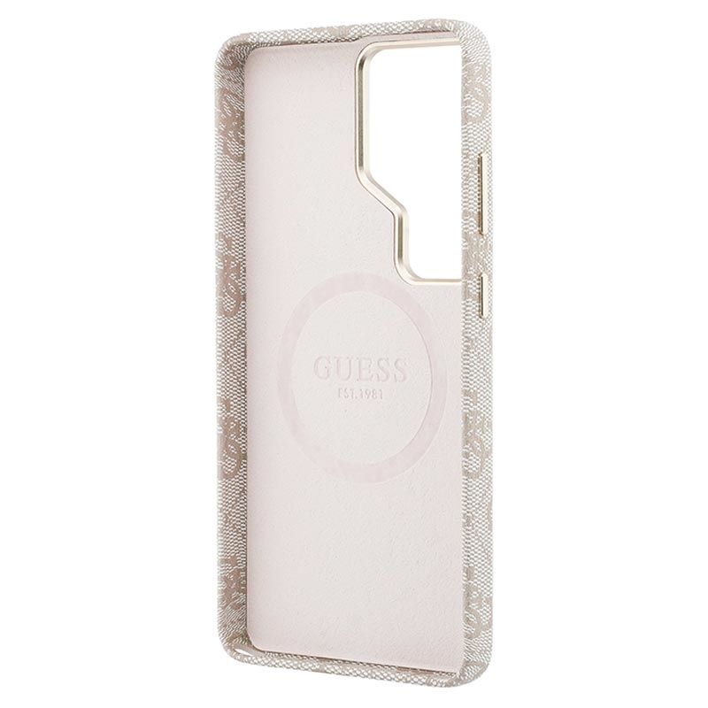 Ge din Samsung Galaxy S26 Ultra ett exklusivt utseende med Guess PU 4G Script Metal Logo Magnetic Case. Det karakteristiska 4G-mönstret och det guldfärgade Guess-logotypen i metall skapar en elegant, exklusiv finish, medan den lätta PC-konstruktionen med polyuretanbeläggning ger skydd i vardagen och ett bekvämt, säkert grepp. En integrerad magnet gör det enkelt att använda med magnetiska telefonhållare utan att det blir klumpigt.