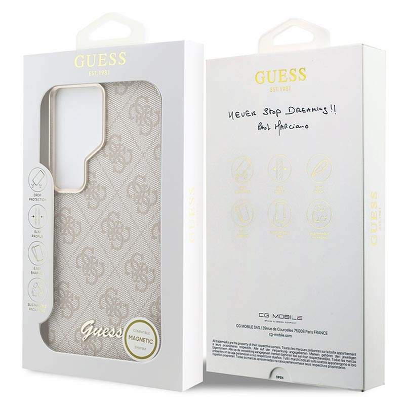 Guess 4G Script Metal Logo magnetiskt skal för Samsung Galaxy S26 Ultra - PC-baksida med polyuretanfinish