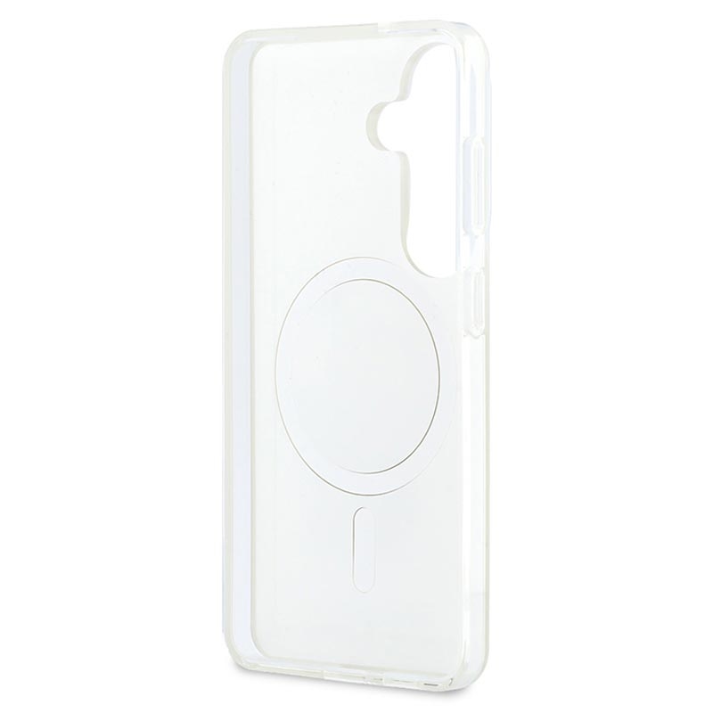 Uppgradera din vardagslook med det magnetiska fodralet Karl Lagerfeld IML Karl and Choupette Back Logo för Samsung Galaxy S26. Detta hybridfodral är designat för att kombinera premiumstil med praktiskt skydd och har den ikoniska silhuettlogotypen Karl and Choupette på baksidan för en modern, trendig finish. Med en styv PC-baksida och flexibla TPU-sidor skyddar det din telefon från daglig slitage samtidigt som det är smalt, bekvämt och lätt att greppa.