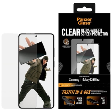 PanzerGlass Ultrabred passform m. FastFit In-A-Box skärmskydd i härdat glas för Samsung Galaxy S26 Ultra