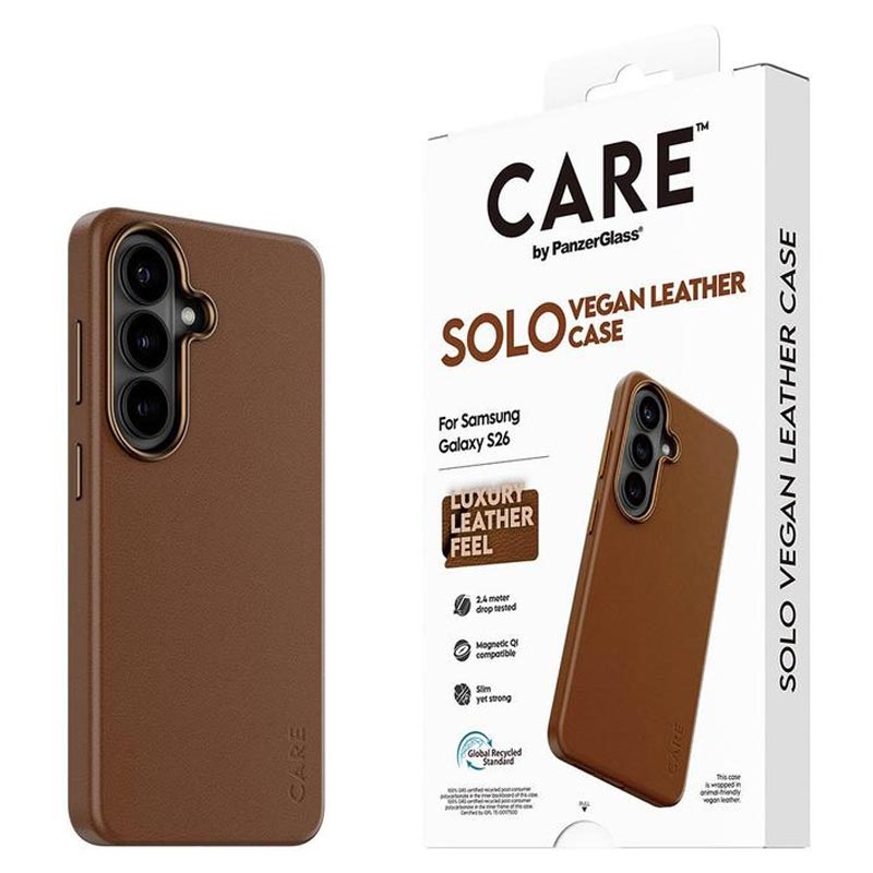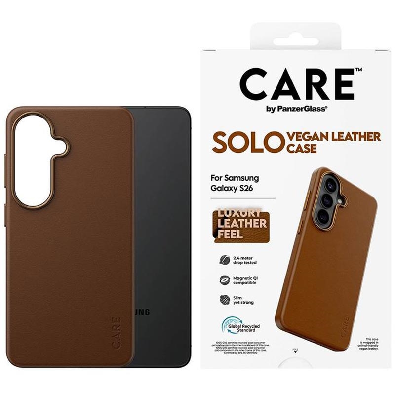Care by PanzerGlass Solo magnetiskt skal för Samsung Galaxy S26 - PU-finish, falltestat från 2,4 m, kompatibelt med magnetiska tillbehör, förbättrat kameraskydd