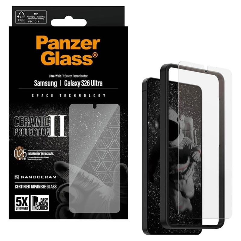 PanzerGlass Ceramic II Protection Ultra-Wide Fit EasyAligner skärmskydd för Samsung Galaxy S26 Ultra - glaskeramik, fingeravtrycksbeständigt, kompatibelt med fodral