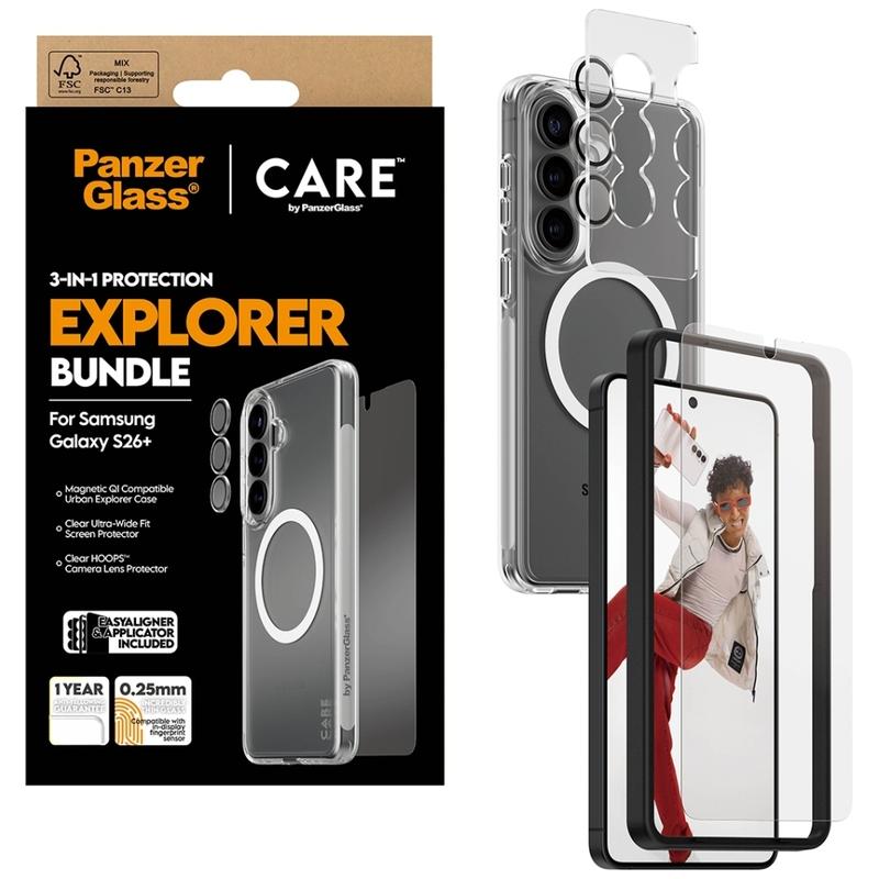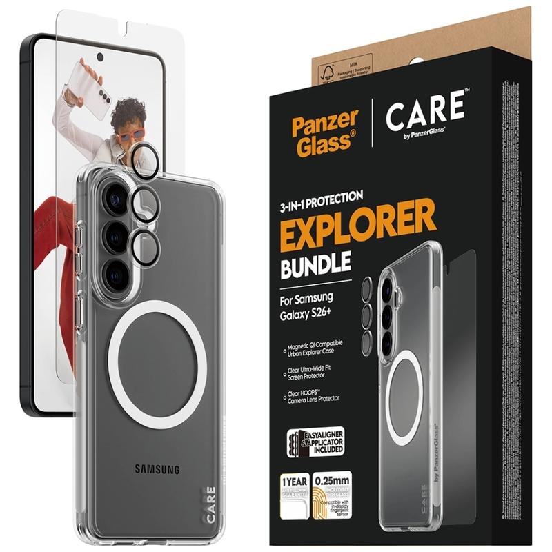 Care by PanzerGlass 3-i-1 Explorer-paket för Samsung Galaxy S26+ - Skärmskydd + Hoops-linskydd + Urban Combat magnetiskt fodral, EasyAligner