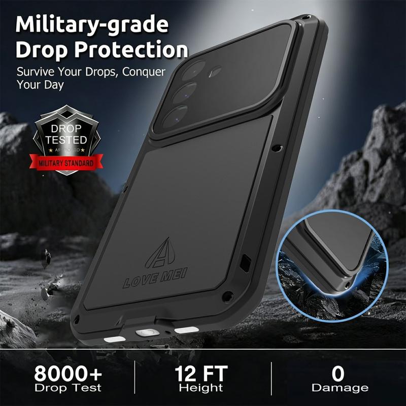 Love Mei-serien är inspirerad av militär- och industriteknik och använder flerskiktsskydd med metallramar och silikondämpning - en struktur som klarar fall på över 2 meter med bibehållen känslighet på pekskärmen.