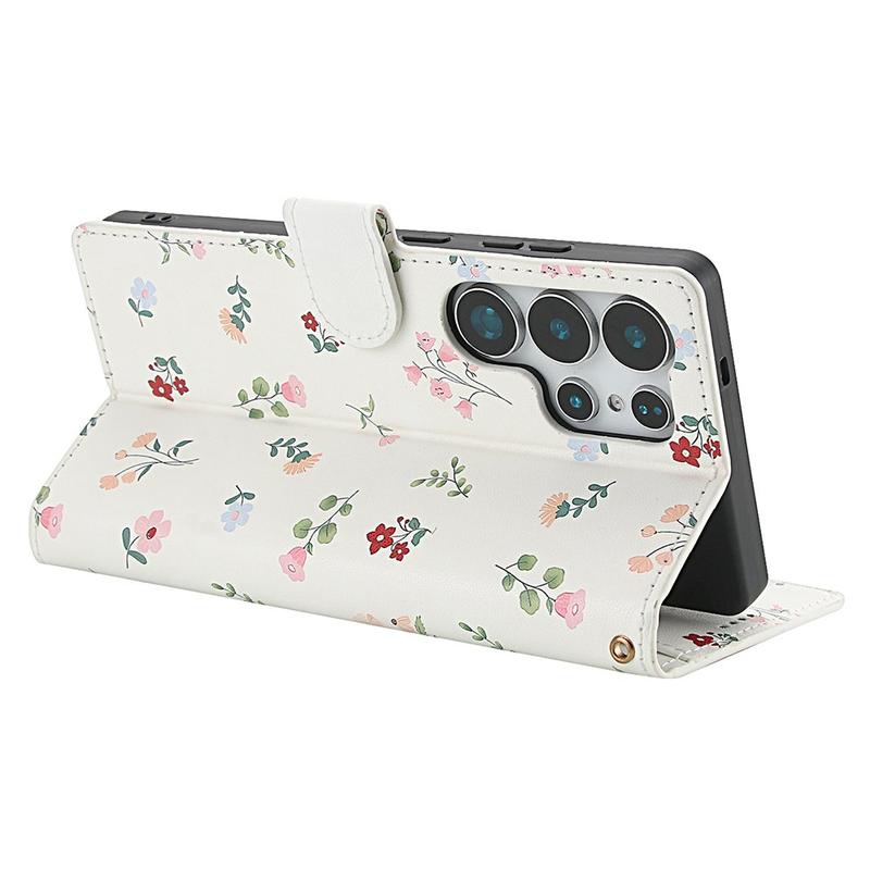Rombiskt blommigt plånboksfodral för Samsung Galaxy S26 Ultra - med rem och kortfack