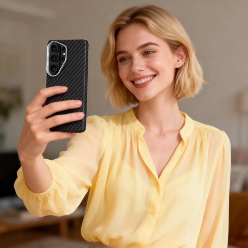 - Kolfiberfinish: Visar upp en dynamisk, sportig textur som ger extra grepp samtidigt som den förbättrar telefonens utseende.