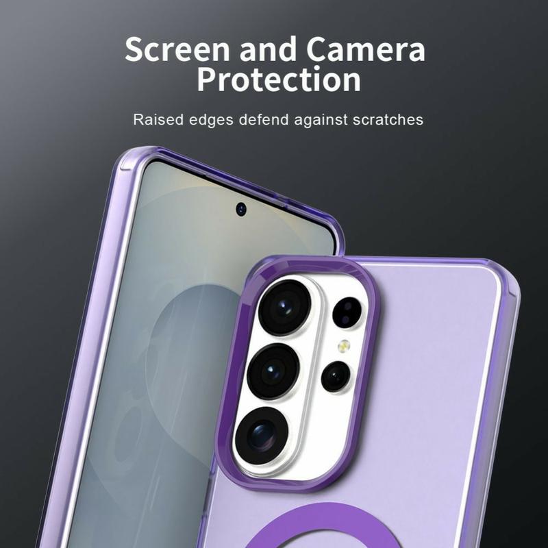 UltraGuard Matte MagSafe Case erbjuder en perfekt balans mellan skydd och elegant design för din Samsung Galaxy S26 Ultra. Det här tunna, lätta fodralet är tillverkat av en hållbar blandning av TPU- och PC-material. Dess matta genomskinliga finish ger din Samsung Galaxy S26 Ultra ett elegant utseende samtidigt som den ger enkel åtkomst till MagSafe-laddning. Med överlägset fall- och repskydd är det ett utmärkt val för daglig användning.