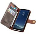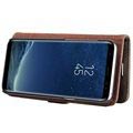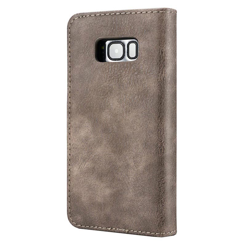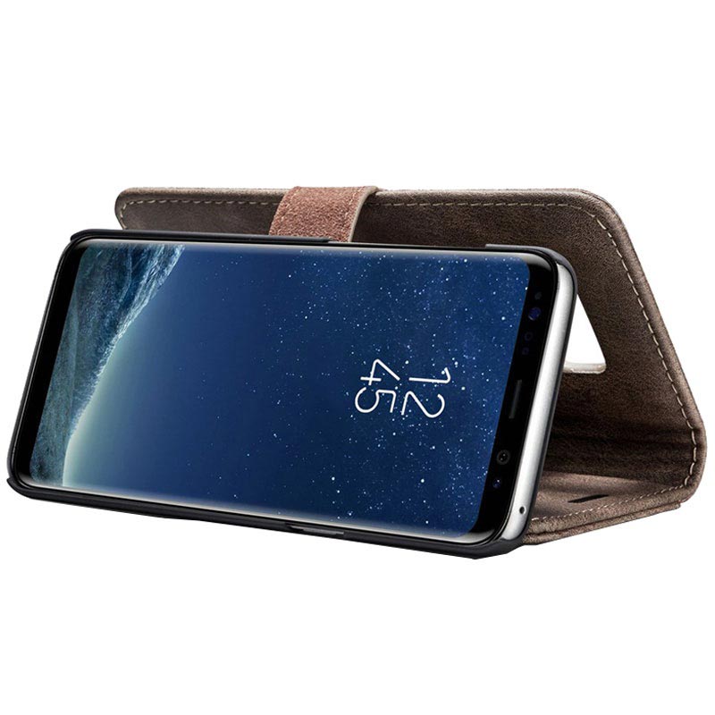 DG.Ming 2-i-1 plånboksfodral för Samsung Galaxy S8 kombinerar spaltläder foliofodral med ett löstagbart magnetiskt skal. Detta vackra fodral har fack för kort och en ficka kontanter och kiknande mindre tillbehör. Metall snap-on lås ger extra säkerhet och gör det möjligt att använda fodralet som ett stativ göt handsfree mediavisning. Exakt utskärning för högtalare låter dig ta samtal med fodralet stängt.