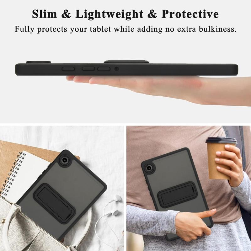 Säkra och förbättra din Samsung Galaxy Tab A9 med detta stötsäkra TPU + PC-fodral, som erbjuder elegant skydd och praktiska funktioner.