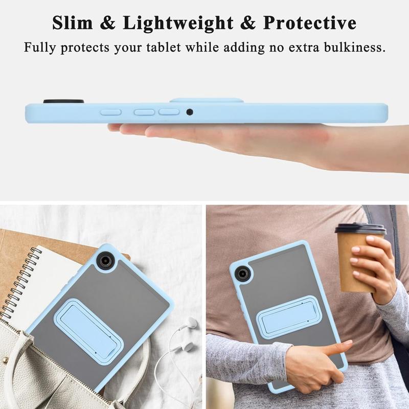 Säkra och förbättra din Samsung Galaxy Tab A9 med detta stötsäkra TPU + PC-fodral, som erbjuder elegant skydd och praktiska funktioner.