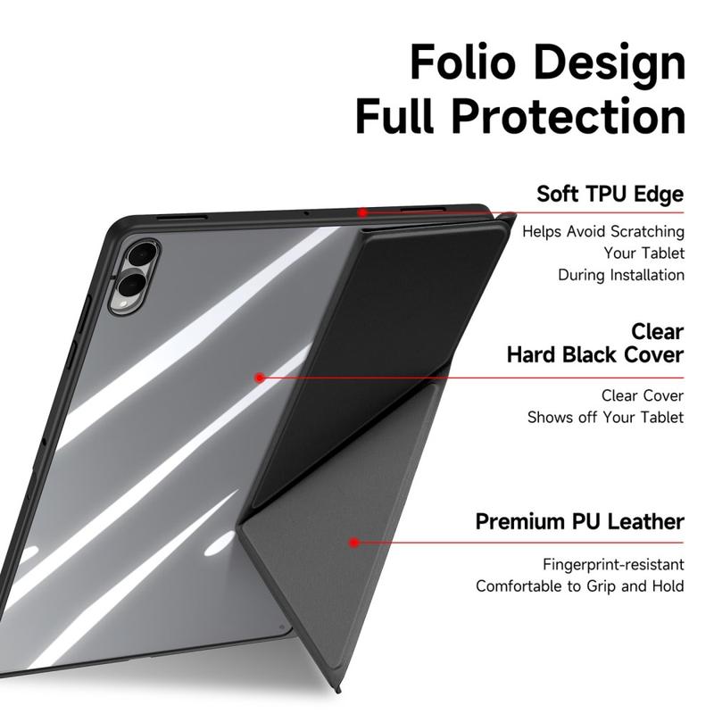Ultratunt: Den tunna, lätta och mjuka framsidan är tillverkad av premium PU-läder, den repfria insidan ger bra skydd och TPU-ramen + PC-baksidan gör din surfplatta mer stabil