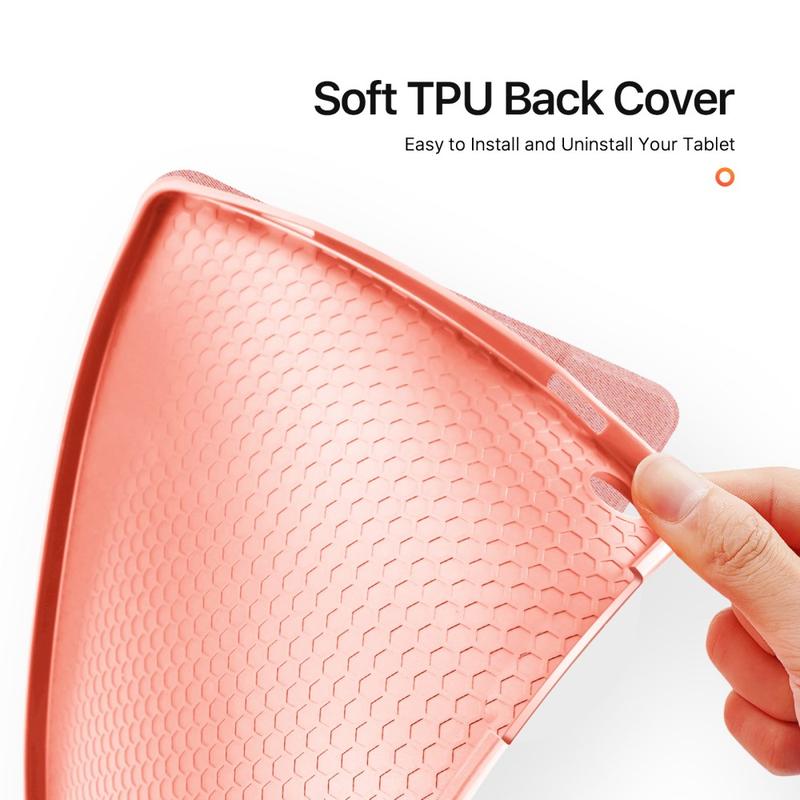 Detta tillbehör håller enheten skyddad mot stötar och repor, samt expanderar dess funktionalitet. Framluckan fungerar också som ett stativ med tre lägen för enkel skrift och handsfree videovisning.