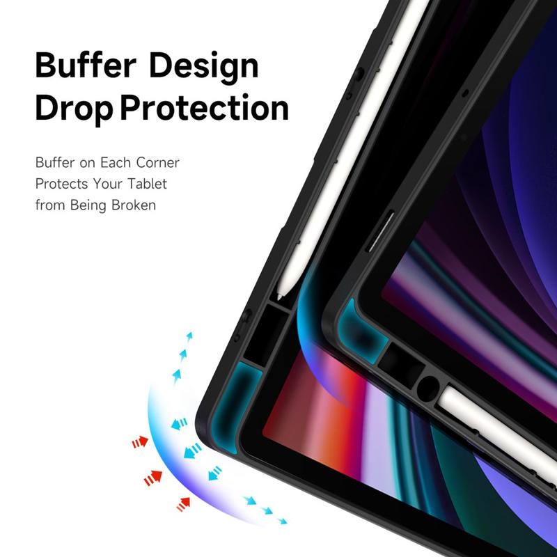 Ultratunt: Den tunna, lätta och mjuka framsidan är tillverkad av premium PU-läder, den repfria insidan ger bra skydd och TPU-ramen + PC-baksidan gör din surfplatta mer stabil