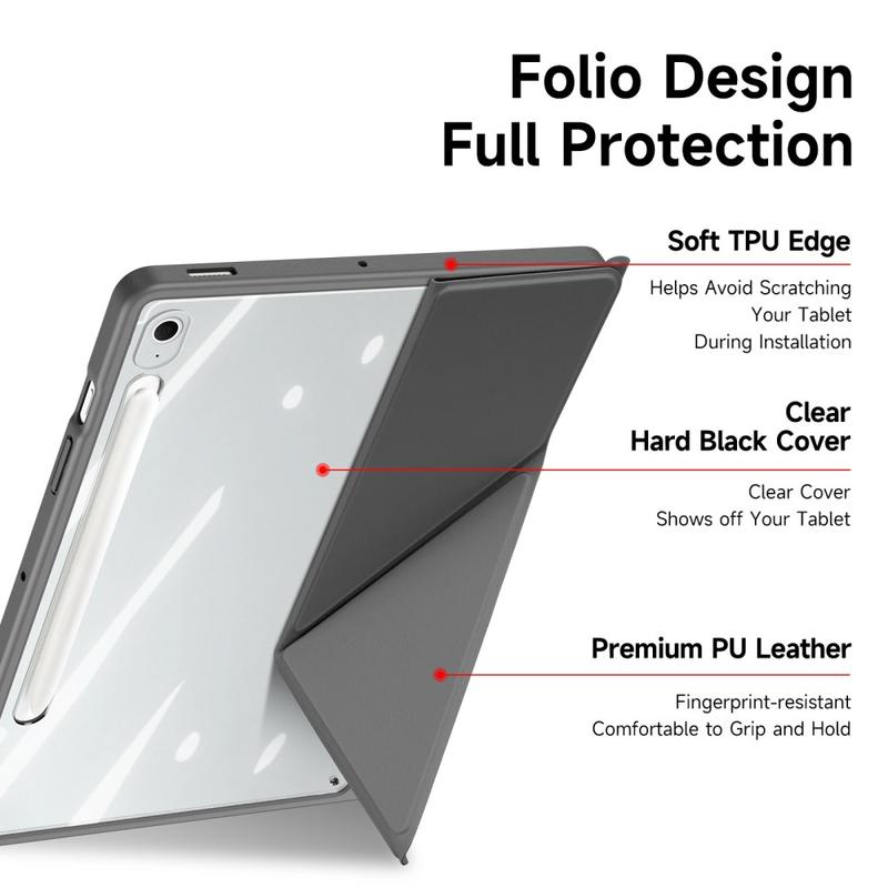 Ultratunt: Den tunna, lätta och mjuka framsidan är tillverkad av premium PU-läder, den repfria insidan ger bra skydd och TPU-ramen + PC-baksidan gör din surfplatta mer stabil