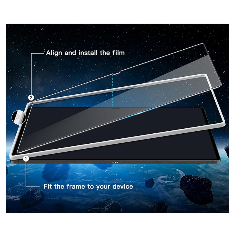 Det splittersäkra 9H-klassade glaset ger ett tufft dagligt skydd mot hack och repor medan bildkvaliteten hålls opåverkad. Trots den tåliga designen är glaset bara 0,33 mm tjockt och kommer därför inte att påverka touchskärmens respons och bevarar full funktionalitet på din Samsung Galaxy Tab S9 Ultra.