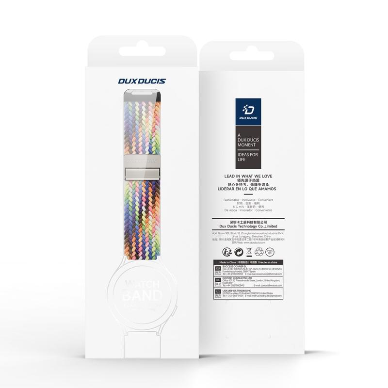 Njut av överlägsen komfort och stil med Dux Ducis Mixture Pro Series flätat nylonband. Det här hudvänliga, andningsbara bandet är tillverkat av premiumnylon och är utformat för komfort hela dagen. Det dubbla magnetiska spännet garanterar enkla justeringar för perfekt passform, medan den sömlösa, spännefria designen eliminerar bulk.
