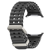 Detta äkta Samsung Marine Band är konstruerat för Samsung Galaxy Watch Ultra och kombinerar ett korrosionsbeständigt titanspänne med ett HNBR-armband med krusningsprofil som leder bort vatten och torkar på några minuter - perfekt för simning, triathlonträning och vardagskläder.