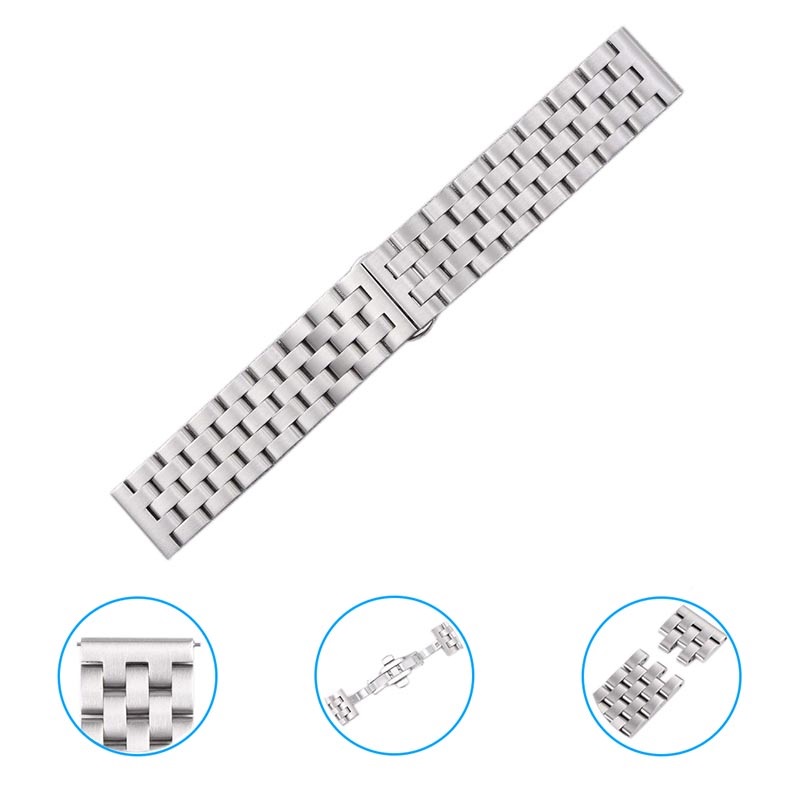 Förutom att ha en hållbar kedjekonstruktion med rostfritt stål, har denna Samsung Galaxy Watch rem också ett praktiskt fjärilsspänne. Samtidigt passar den traditionell designen allas stil.
