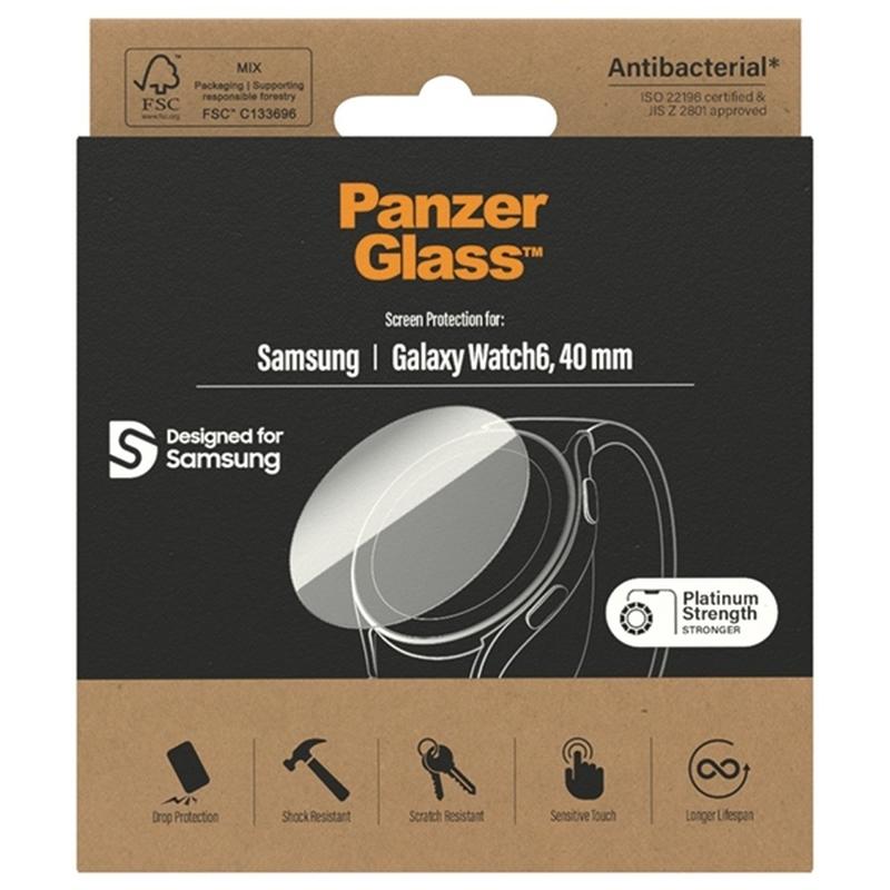 - PanzerGlass skärmskydd i härdat glas till Samsung Galaxy Watch6