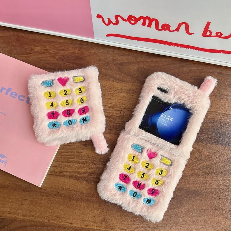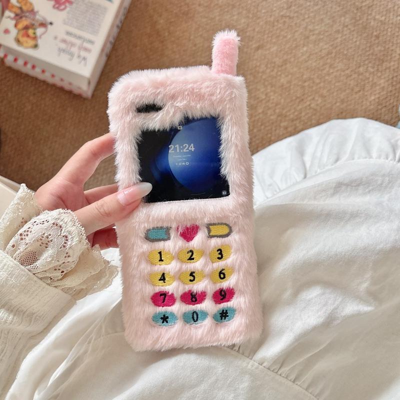 Retro plysch skal för Samsung Galaxy Z Flip6, Galaxy Z Flip7 FE med broderade knappar