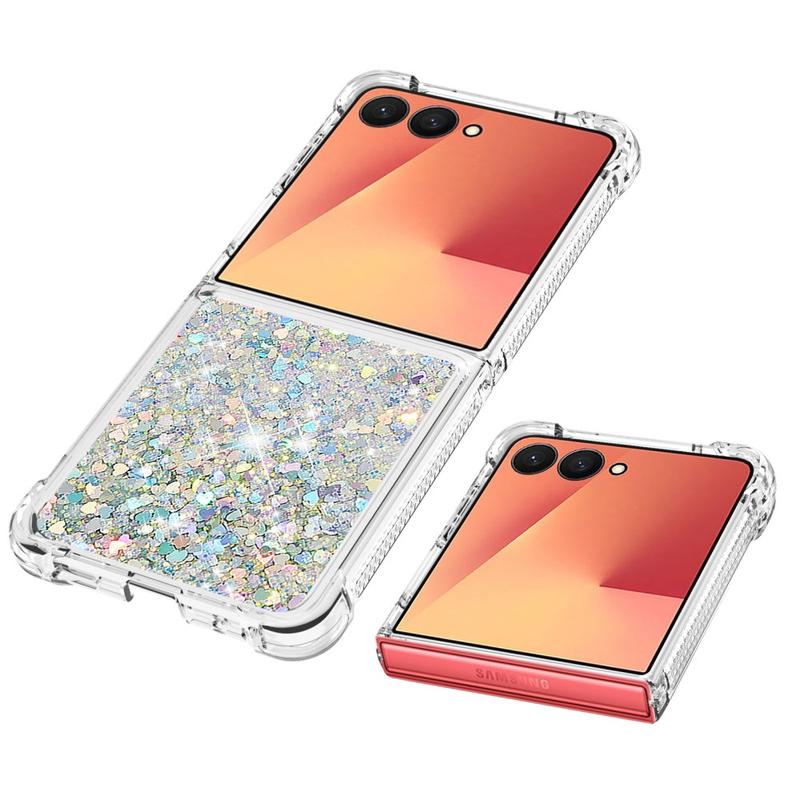 Samsung Galaxy Z Flip7 Glitter Quicksand TPU-skal - Silverhjärtan