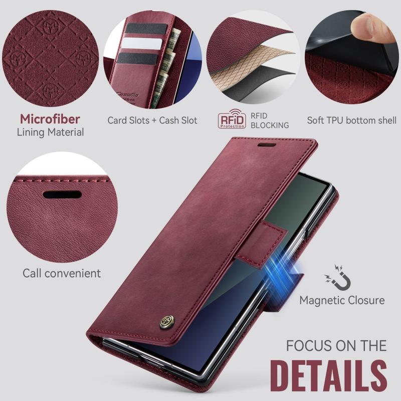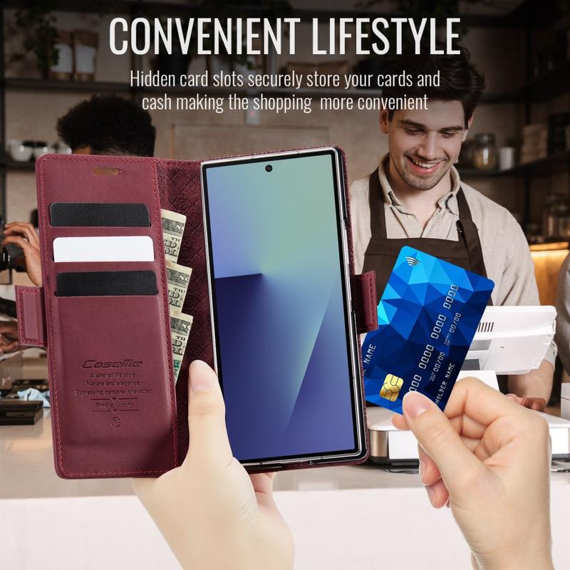 CASEME 033 Series Wallet Case för Samsung Galaxy Z Fold7 är tillverkat av polyuretan med kalvtextur kombinerat med TPU, vilket ger ett helkroppsskydd mot repor, stötar och dagligt slitage samtidigt som det bibehåller en premium, elegant look.