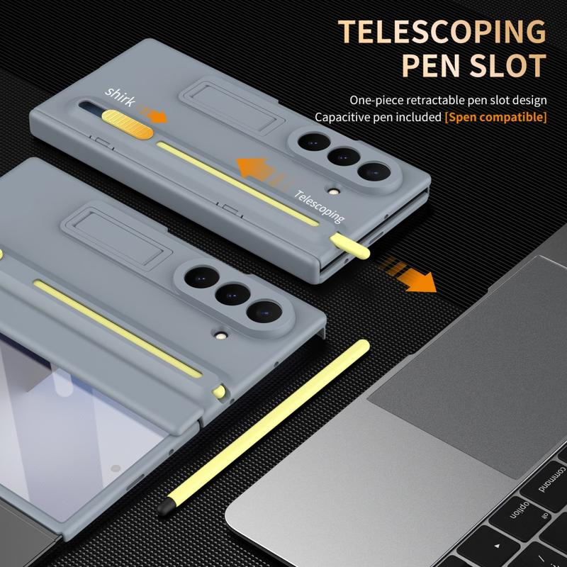 Det här fodralet ger skydd, funktionalitet och bekvämlighet i ett komplett paket. Med kickstand, skärmskydd och penna eliminerar det behovet av extra tillbehör samtidigt som det ger fullt stöd för telefonens vikbara design.