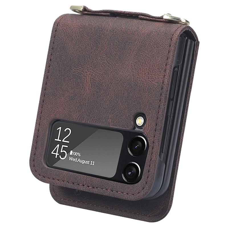 Samsung Galaxy Z Flip4 Hybrid Skal med Korthållare - Brun