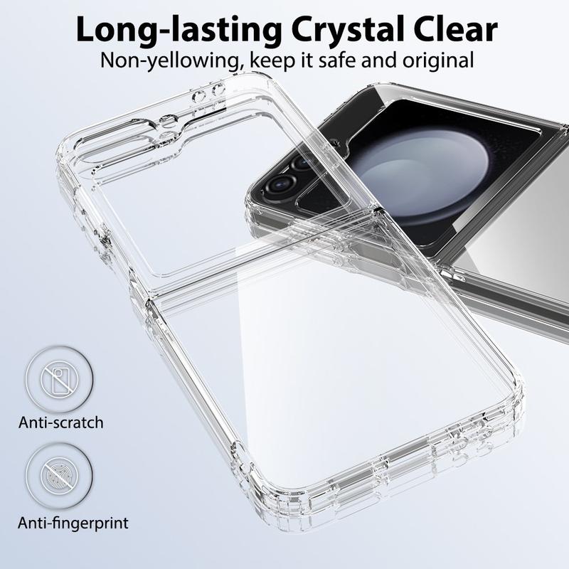 Detta tillbehör använder en kombination av akryl och TPU för att hålla din smartphone i bästa skick. Samtidigt ser förstärkta, stötabsorberande hörn till att förhindra skador från fall, medan den genomskinliga designen visar upp den vackra designen av din Samsung Galaxy Z Flip6, Galaxy Z Flip7 FE.