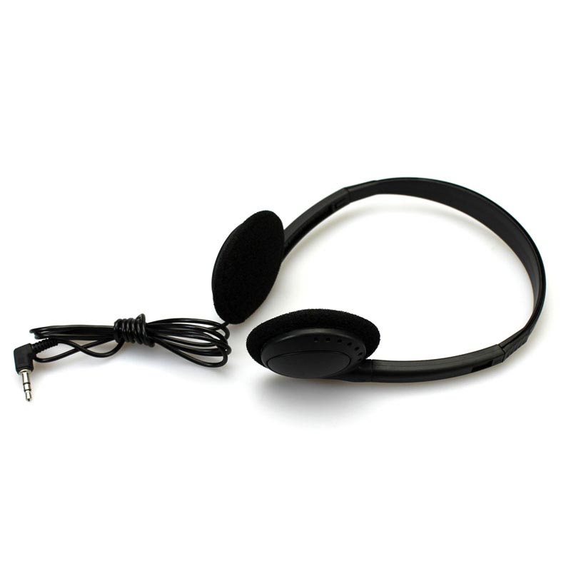 Standard musikhörlurar med vikbara öronkåpor. Lämpliga för flygplan, tåg, bussar, sjukhus, biografer etc.