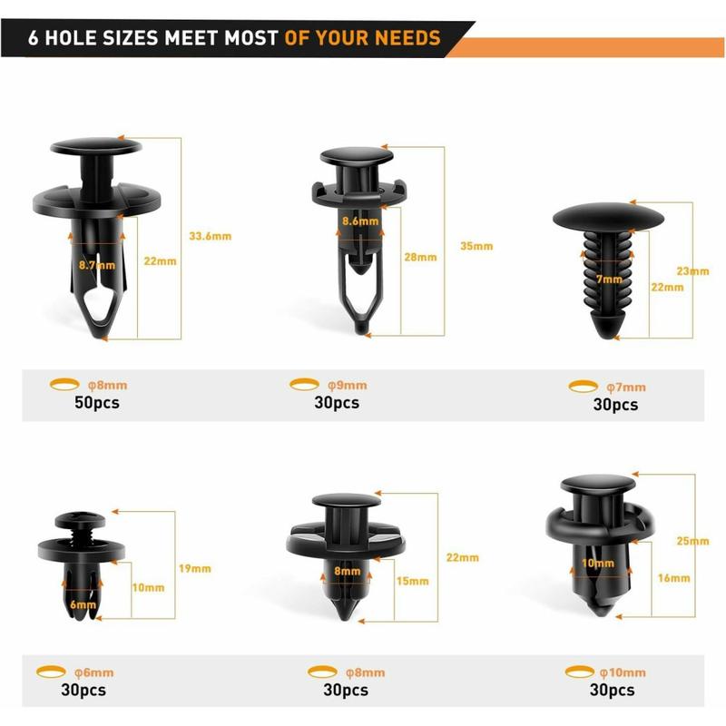 Med sex storlekar, 200 delar och ett praktiskt bändverktyg har du all hårdvara som behövs för rutinmässiga bilreparationer - du behöver inte längre leta i reservdelsbutiker efter clips som saknas. Dess universella kompatibilitet och hållbara konstruktion gör den till ett måste för alla som vill spara tid och minska besväret när de tar hand om sin bil.