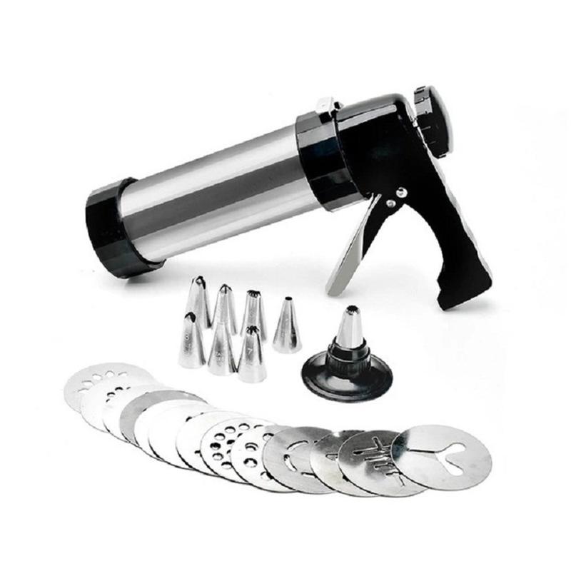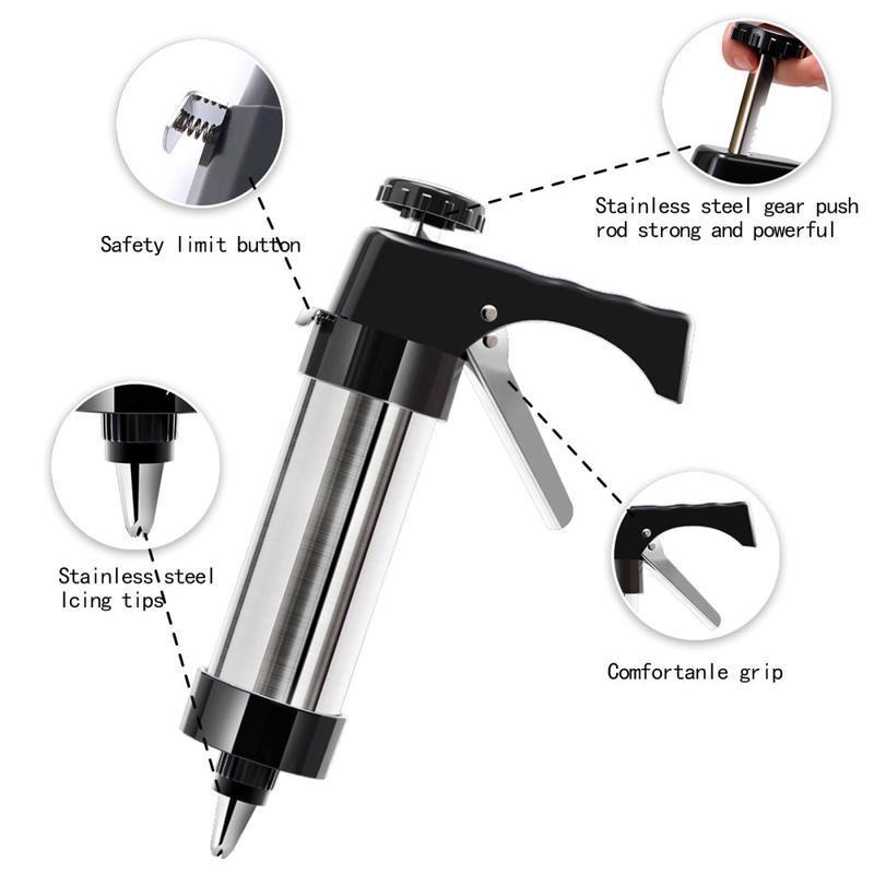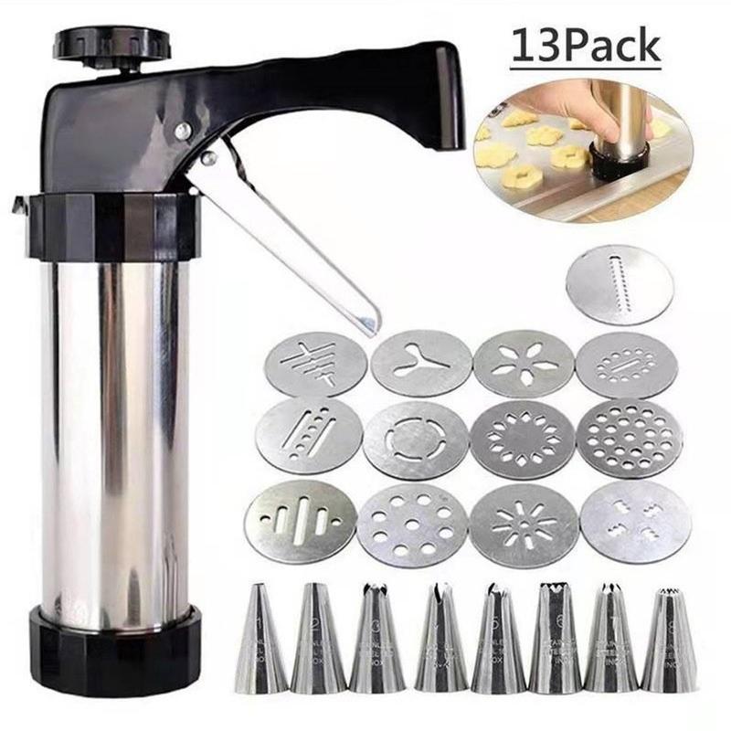 Set med bakpistol för kakpress i rostfritt stål - 8 munstycken och 13 skivor, BPA-fri