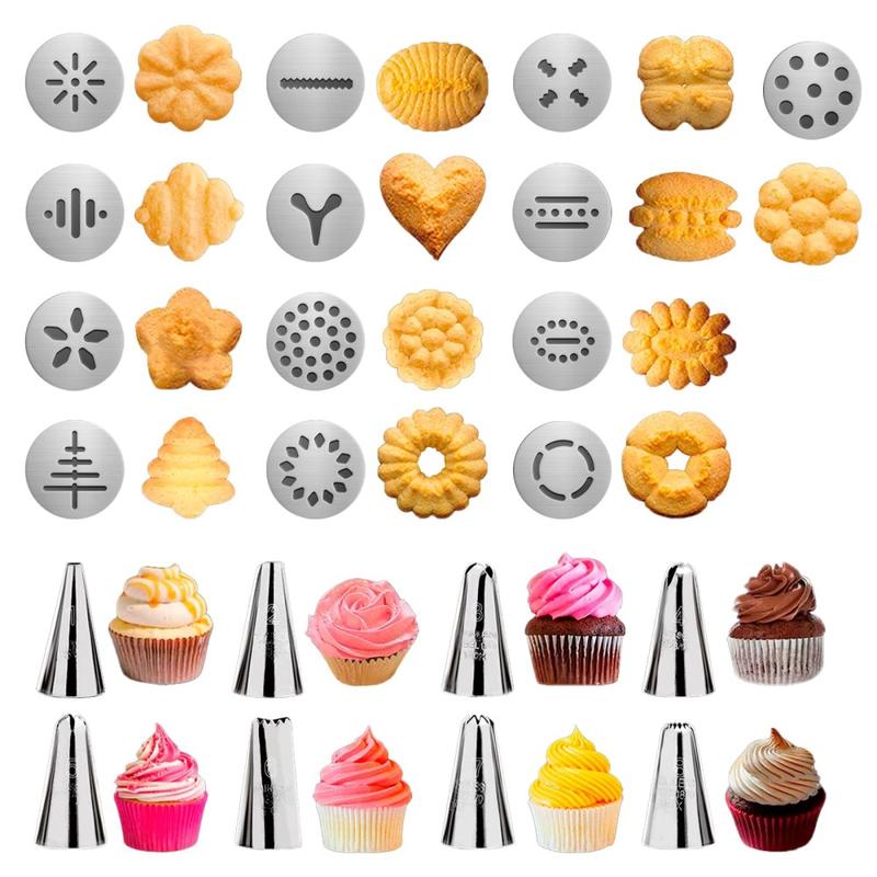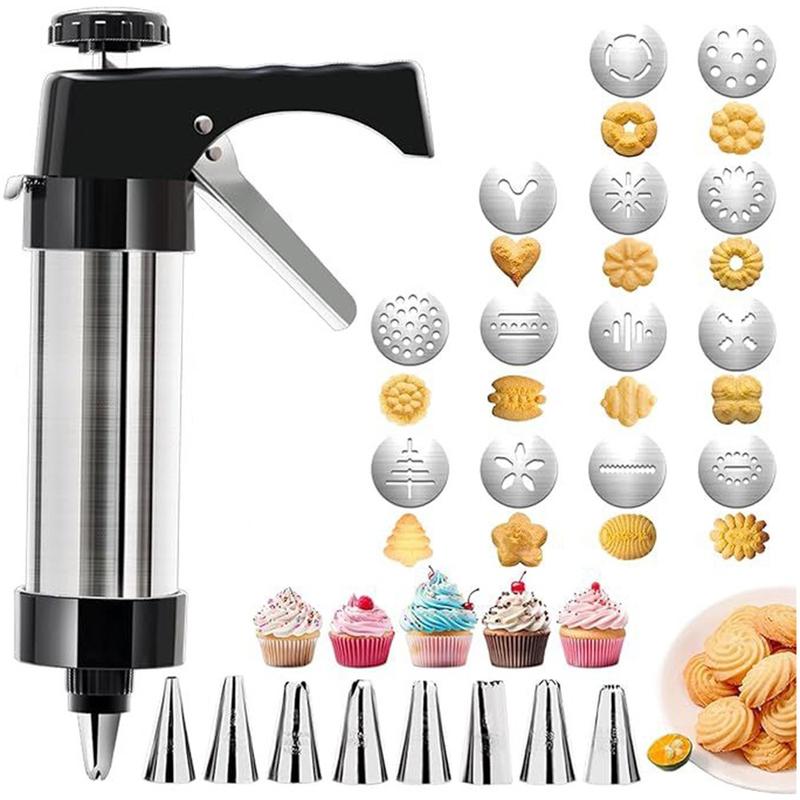 Detta set med kakpressar ger dig kreativ frihet utan komplicerade verktyg. Den robusta konstruktionen i rostfritt stål garanterar långvarig användning, medan det breda urvalet av skivor och munstycken gör att du kan anpassa varje bakning. Enkel rengöring och enkel användning gör den lämplig för både nybörjare och erfarna bagare.