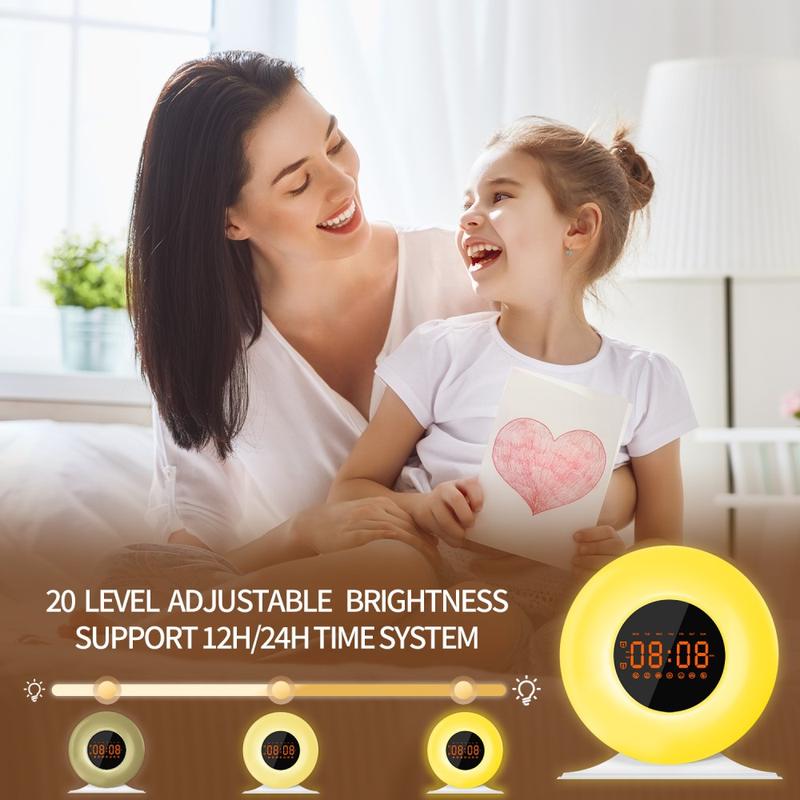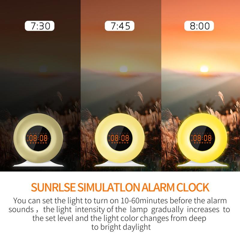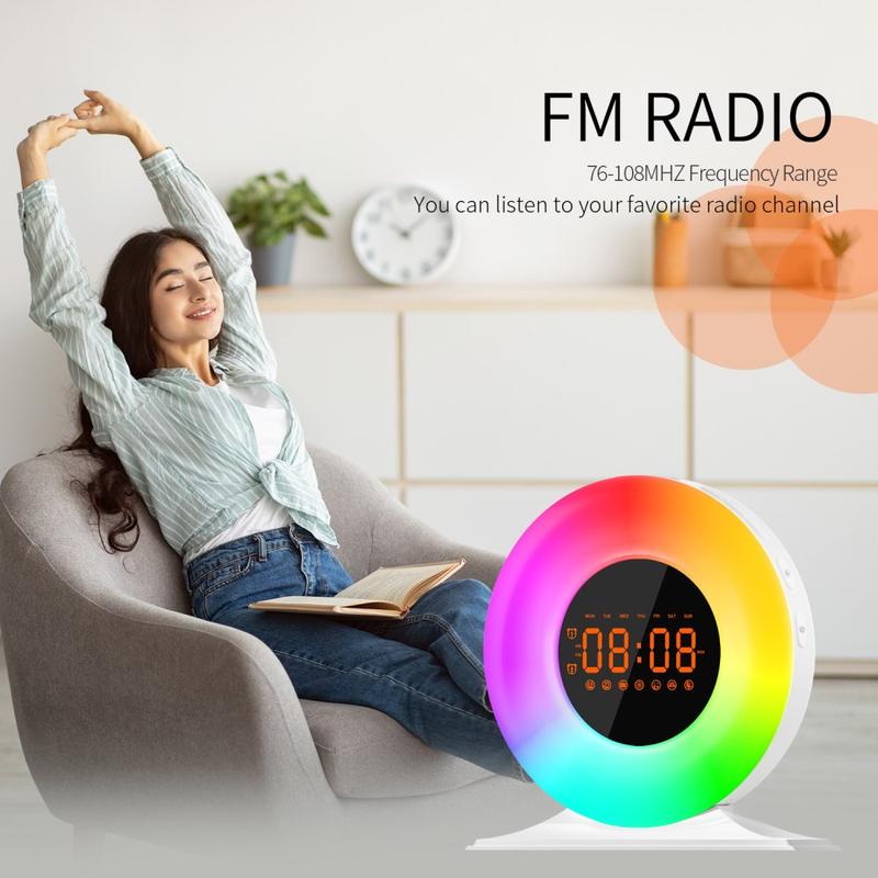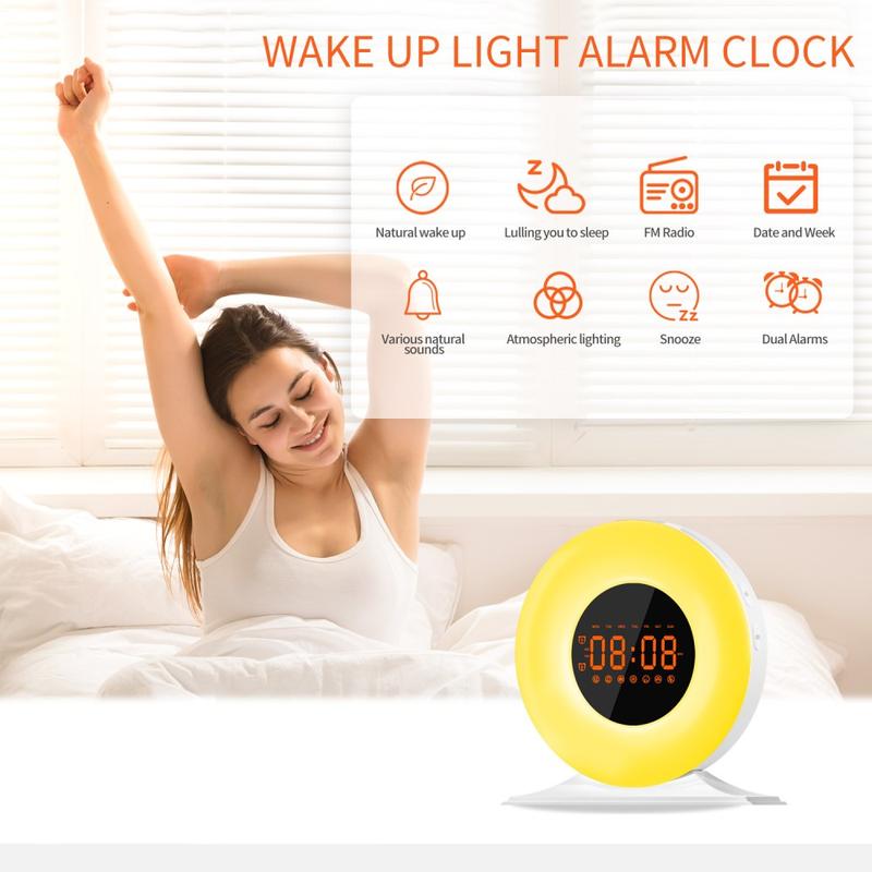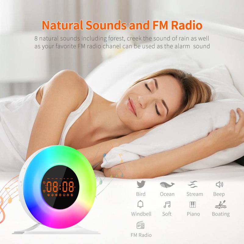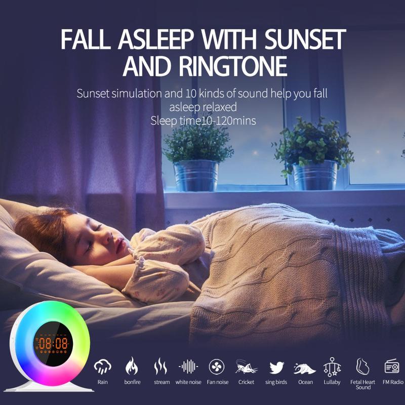 SH05 Soluppgångsväckarklocka med vitt brus och nattlampa - FM-radio, sömntimer