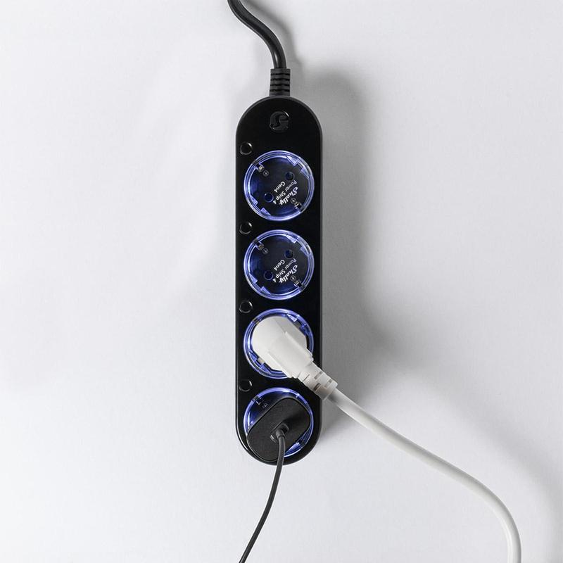 Varje uttag har en anpassningsbar flerfärgad LED-indikator med justerbar ljusstyrka och ett nattläge för subtil belysning utan att störa sömnen.