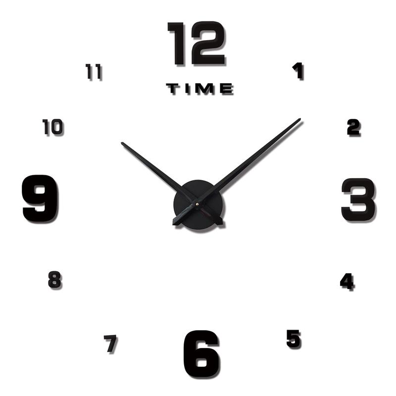 Självhäftande väggklocka med lösa dekorativa siffror - 70 till 120cm - Svart