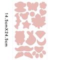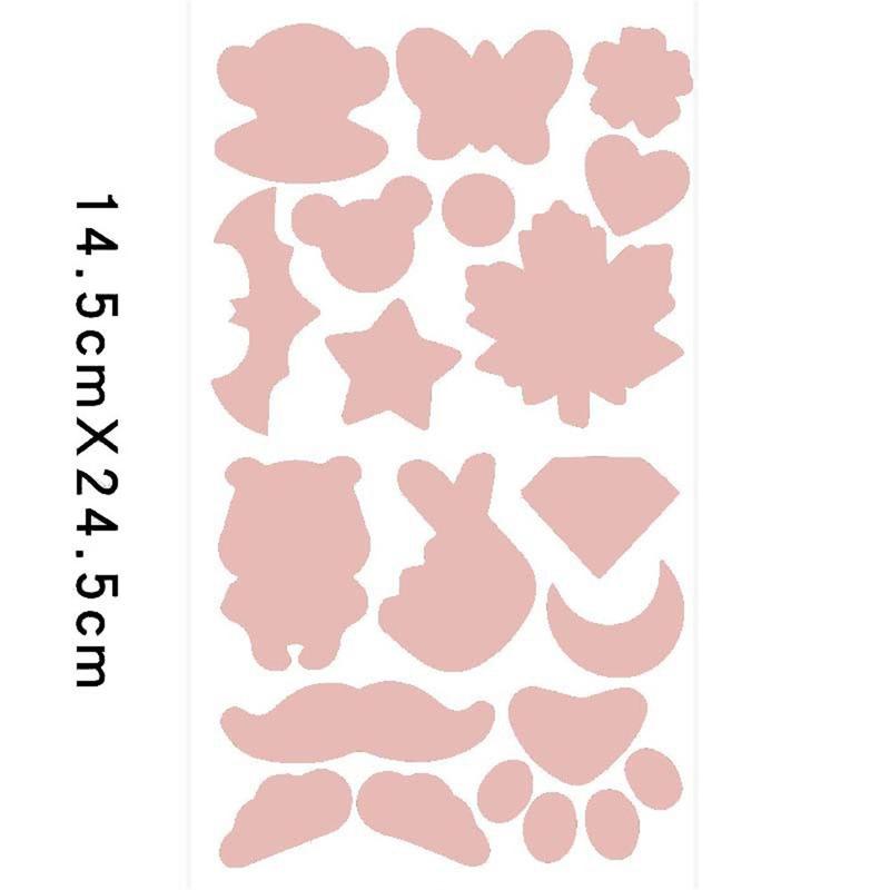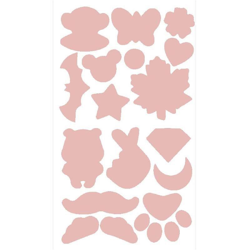 - Arkstorlek: 24,5 cm × 14,5 cm; olika former färdiga att skala av och trycka på