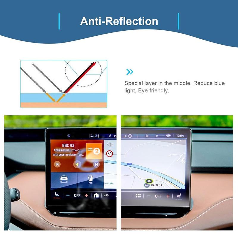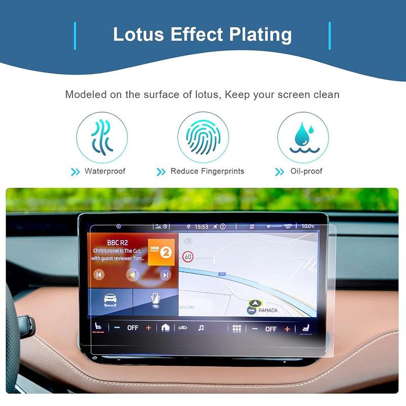 Din bils infotainmentskärm är en av de mest använda delarna av interiören. Detta skydd i härdat glas hjälper till att skydda skärmen från repor och fingeravtryck samtidigt som pekresponsen förblir smidig och bilden skarp. Det är en enkel uppgradering som hjälper till att bibehålla värdet och utseendet på din bils interiörteknik.